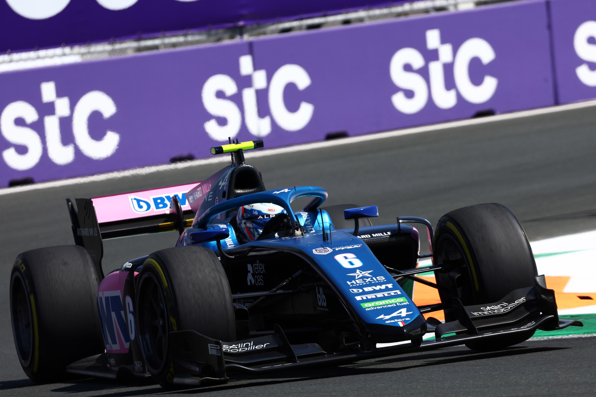 Victor Martins has taken pole position for Sunday’s F2 Feature race in Saudi Arabia in a session twice interrupted by red flags.