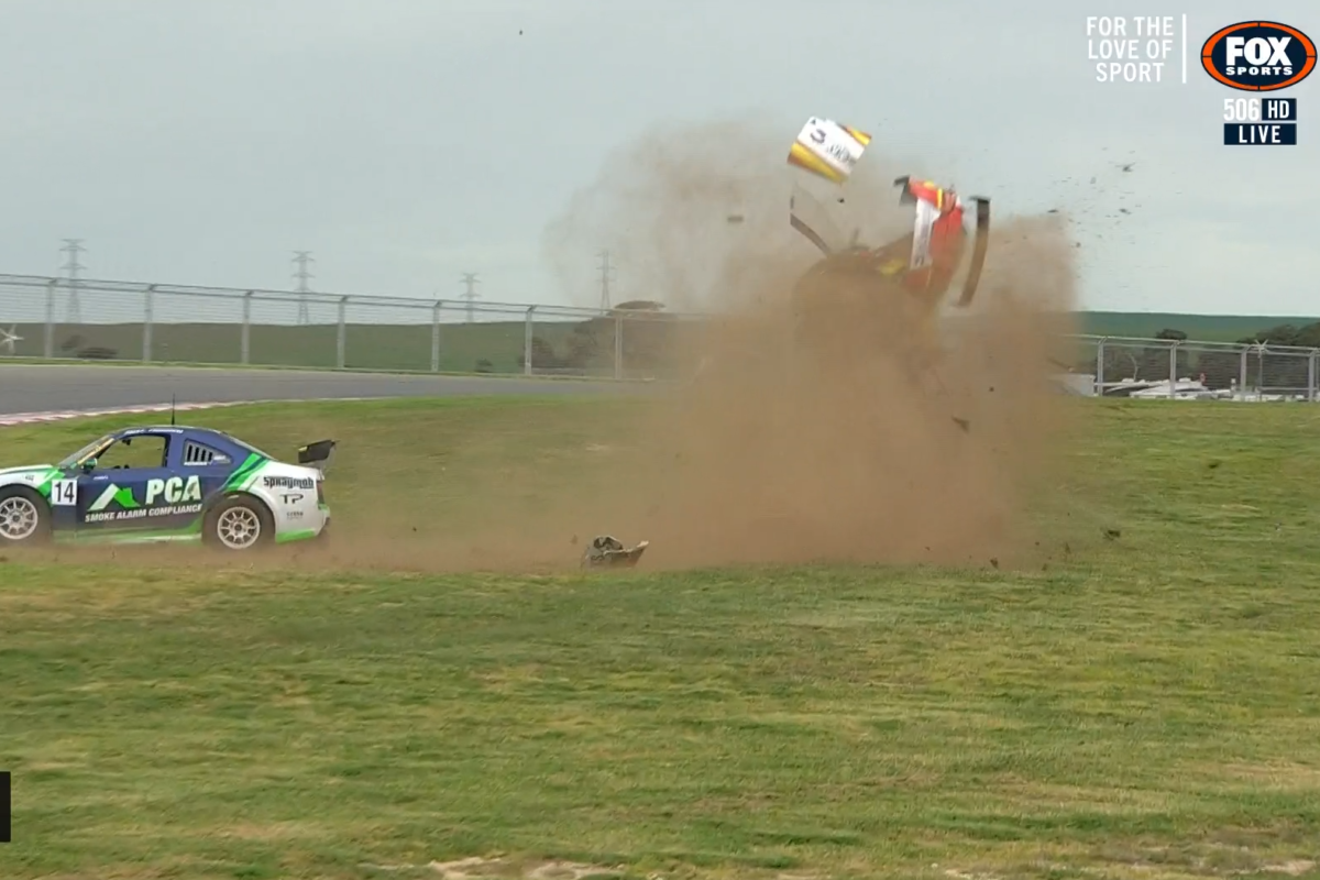 Mark Griffith was involved in a massive crash on the opening lap of the final Aussie Racing Cars race at The Bend Motorsport Park.