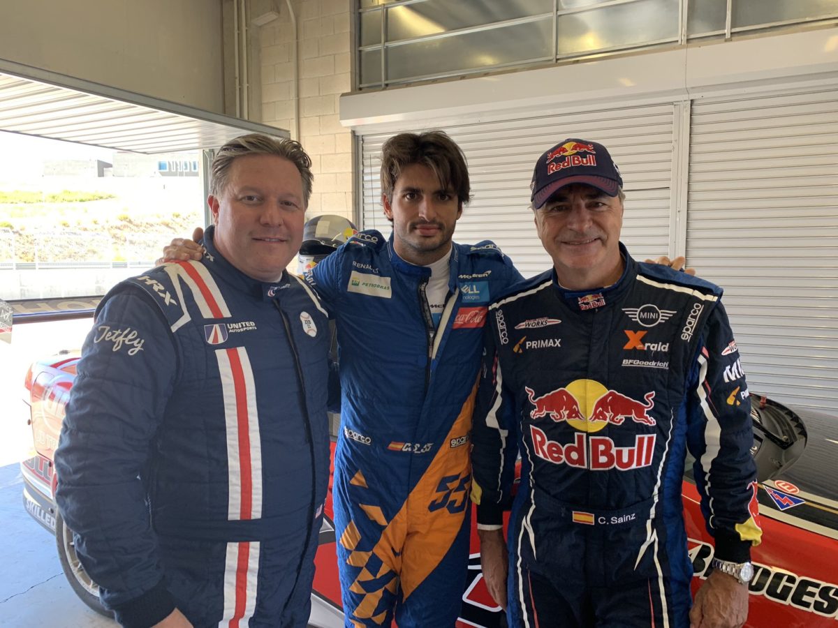 McLaren Formula 1 driver Carlos Sainz and his two-time World Rally Championship winning father Carlos Sainz Sr have cut laps in a Supercheap Auto Bathurst 1000 winning Supercar.