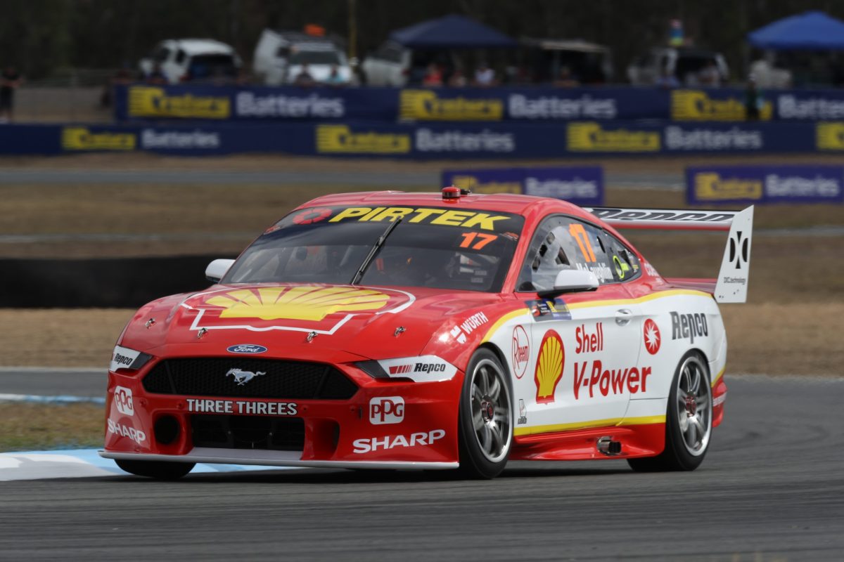 Shell V-Power Racing Team’s McLaughlin improved from fourth to first with a 1:09.1982s right at the end of the half-hour session at an overcast Queensland Raceway, edging previous fast man Davison by 0.1271s.