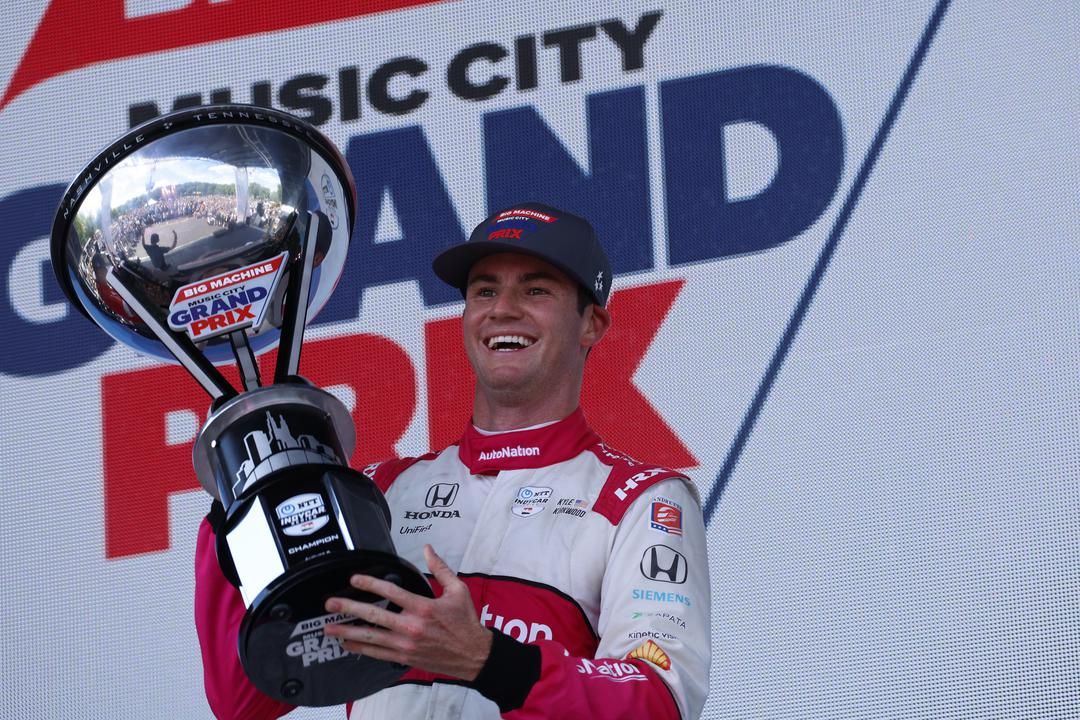 After two late full course yellows and a red flag period, Kyle Kirkwood picked up the second win of his IndyCar Series career in Sunday’s Music City Grand Prix on the streets of Nashville.