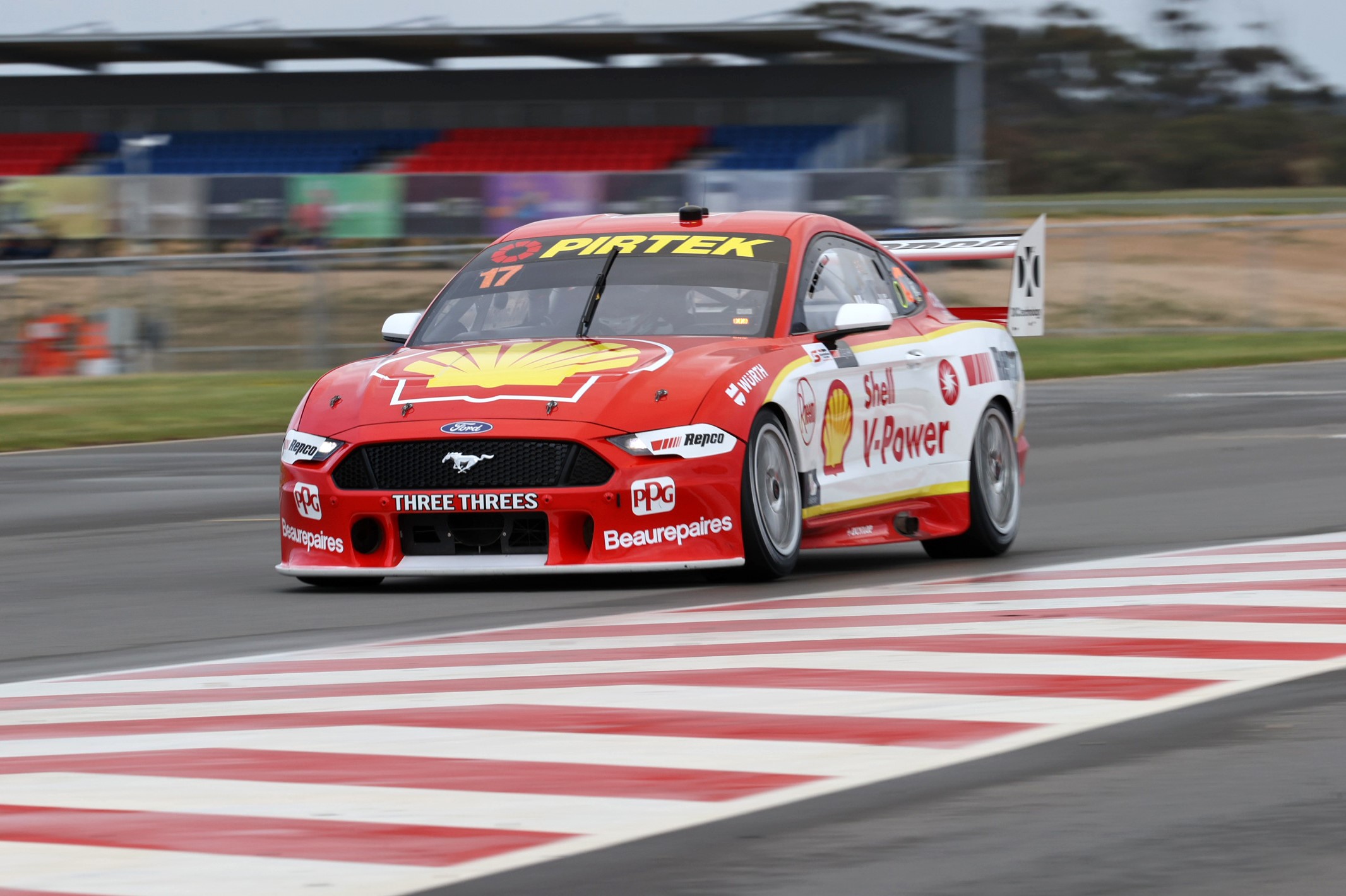 The Shell V-Power Racing Team driver started the second race at The Bend Motorsport Park from pole position, but ceded the lead to eventual race winner Shane van Gisbergen at Turn 1.