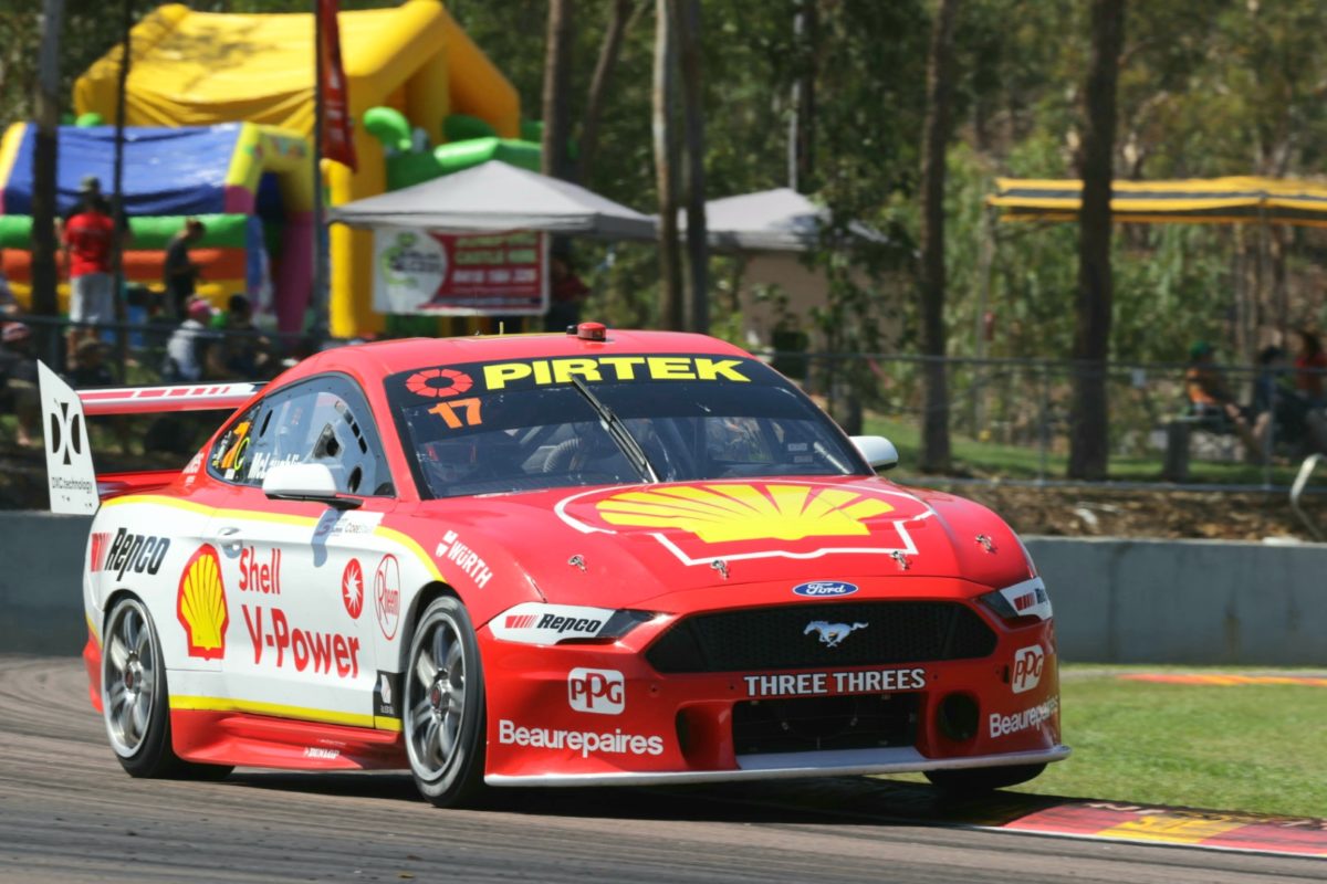McLaughlin took his Shell V-Power Mustang into the lead on the run to the first corner and effectively maintained it throughout the 38-lap encounter at Hidden Valley Raceway, while the Red Bull Holden Racing Team’s Whincup was similarly second for the duration.