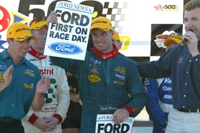 As our photo from the V8 Sleuth archives shows, Stone Brothers Racing’s David Besnard and Simon Wills claimed victory in their Caltex Havoline Falcon after the Kmart-driven Commodore of Greg Murphy coughed and spluttered itself out of the lead.