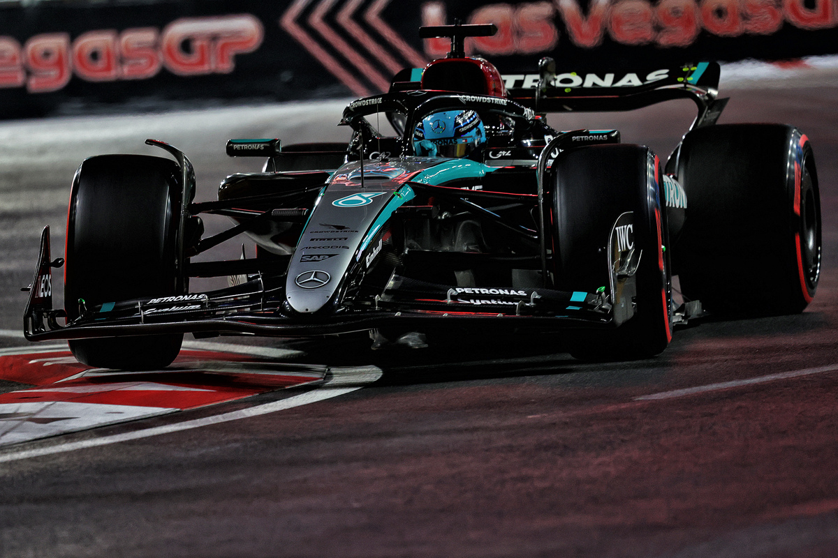 George Russell went fastest in Free Practice 2 for the Las Vegas Grand Prix, heading Oscar Piastri and Carlos Sainz. Image: Charniaux / XPB Images