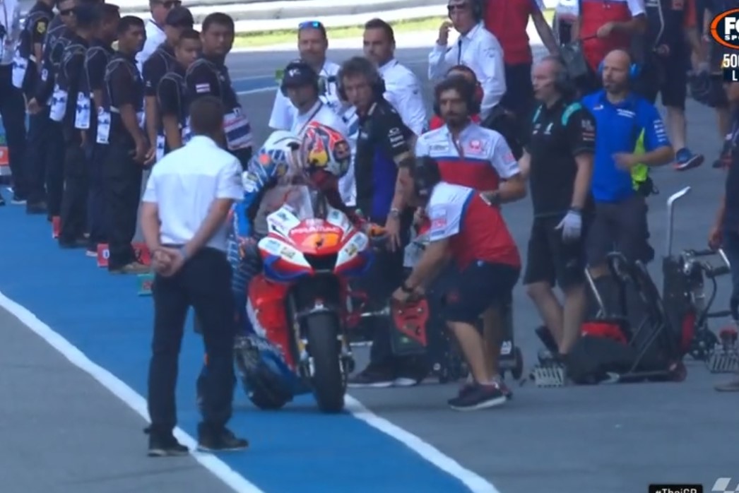 Those hopes evaporated in an instant when he had to push his Pramac Racing entry into pit lane with the rest of the field assembled in their grid boxes and red lights about to go out.