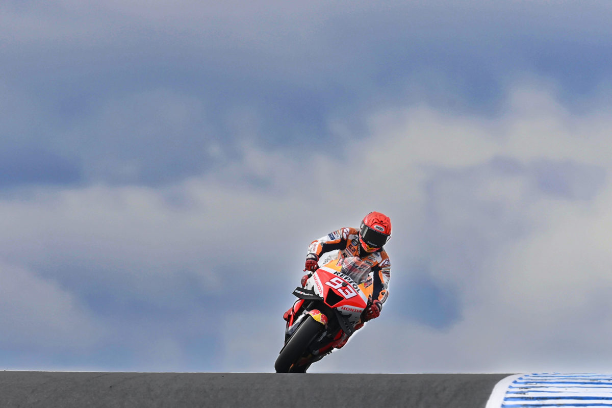 Marquez qualified second-fastest although he admitted that his “only chance” to do so was to get a slipstream from a Ducati, and hence he tucked in behind Francesco Bagnaia for what would be his quickest lap of the session at Phillip Island.