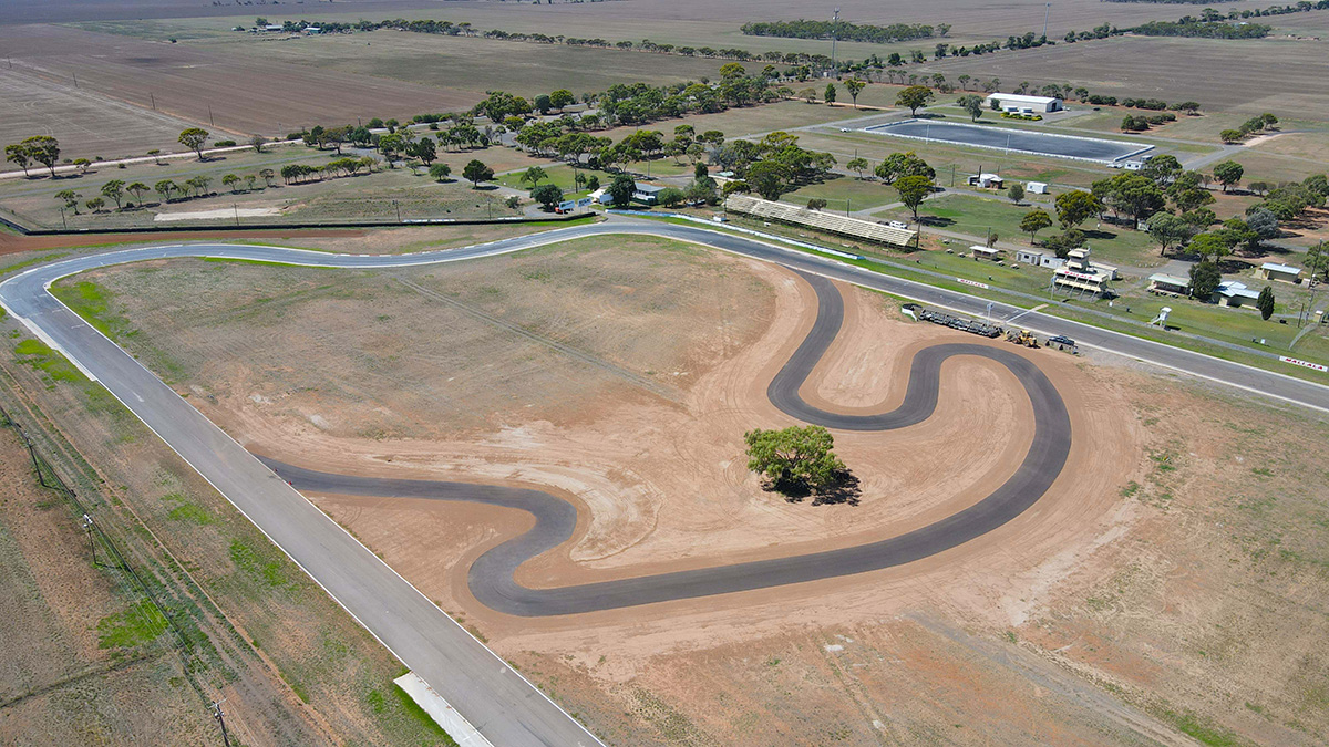 The recently laid asphalt is an exact scaled-down replica of Turn 1 through to Turn 4 of the 2.6km-long Mallala Motorsport Park, including the western ‘banana’ (pictured above).