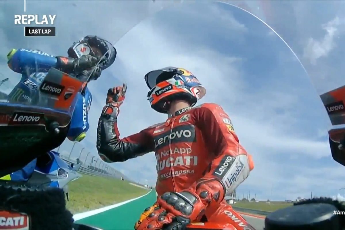 The Ducati rider was seen expressing his anger at Mir on the cool down lap, after a topsy-turvy weekend.