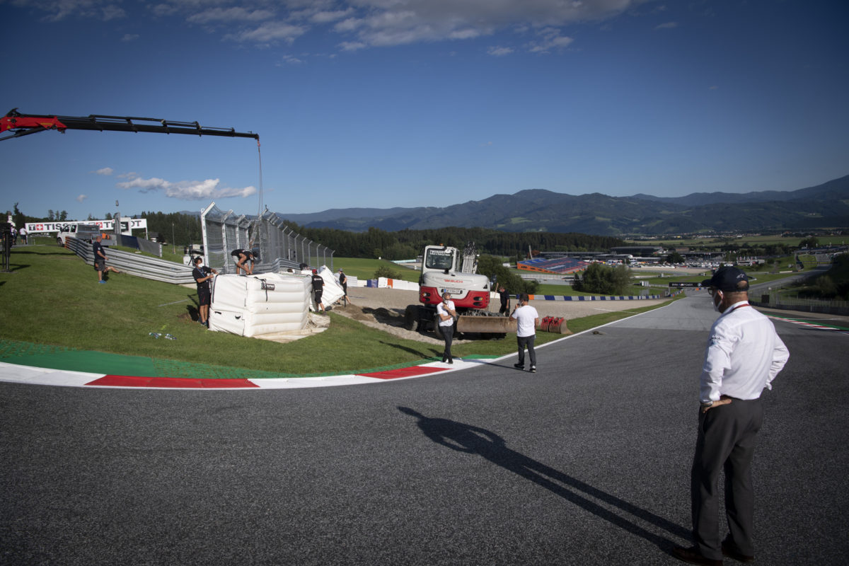 Specifically, a debris fence lined by tyres and an air fence now covers the grass next to the apex of the tight right-hander at the top of the hill for the Styrian Grand Prix weekend.