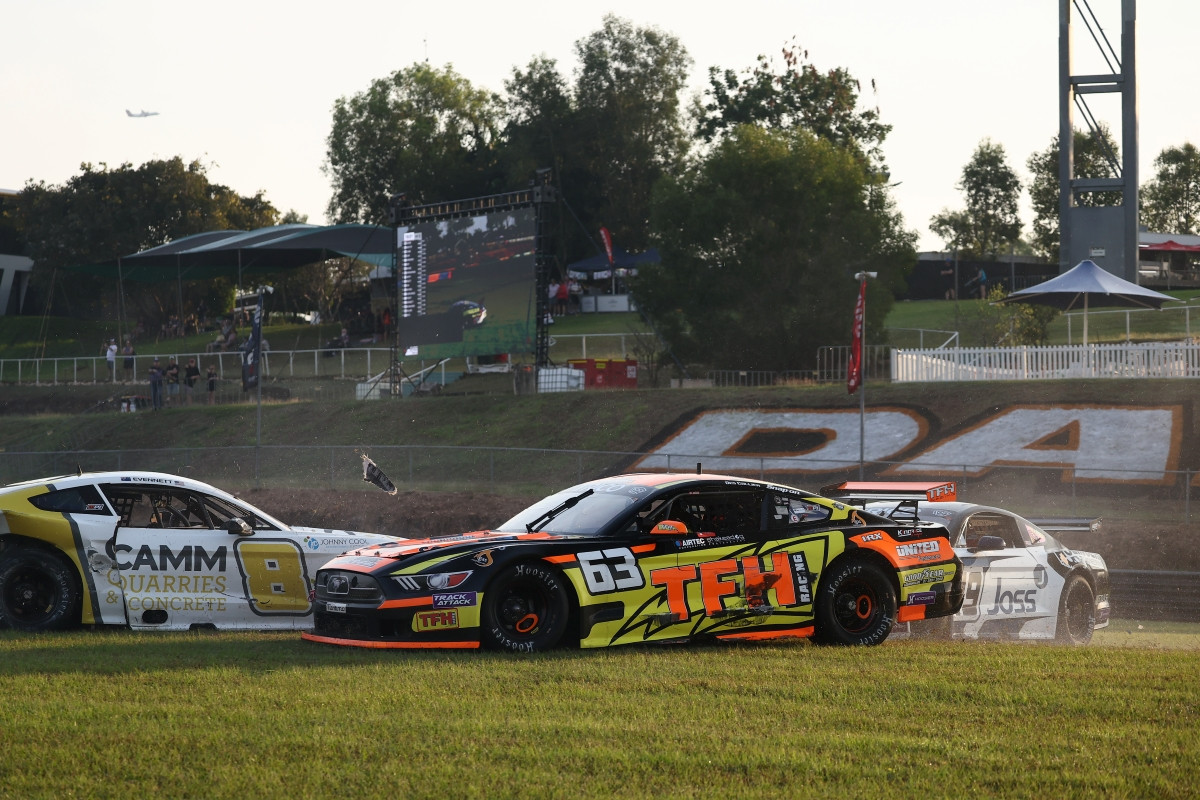 Close behind in third was Tim Slade (Mustang) in front of Aaron Love (Camaro) who started ninth, Jordan Cox (Mustang) from 15th, and Ben Bargwanna (Mustang) from 13th.