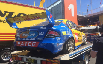 Shane van Gisbergen’s Tekno Holden meanwhile escaped damage after the Kiwi made minor contact with the fence at The Cutting.