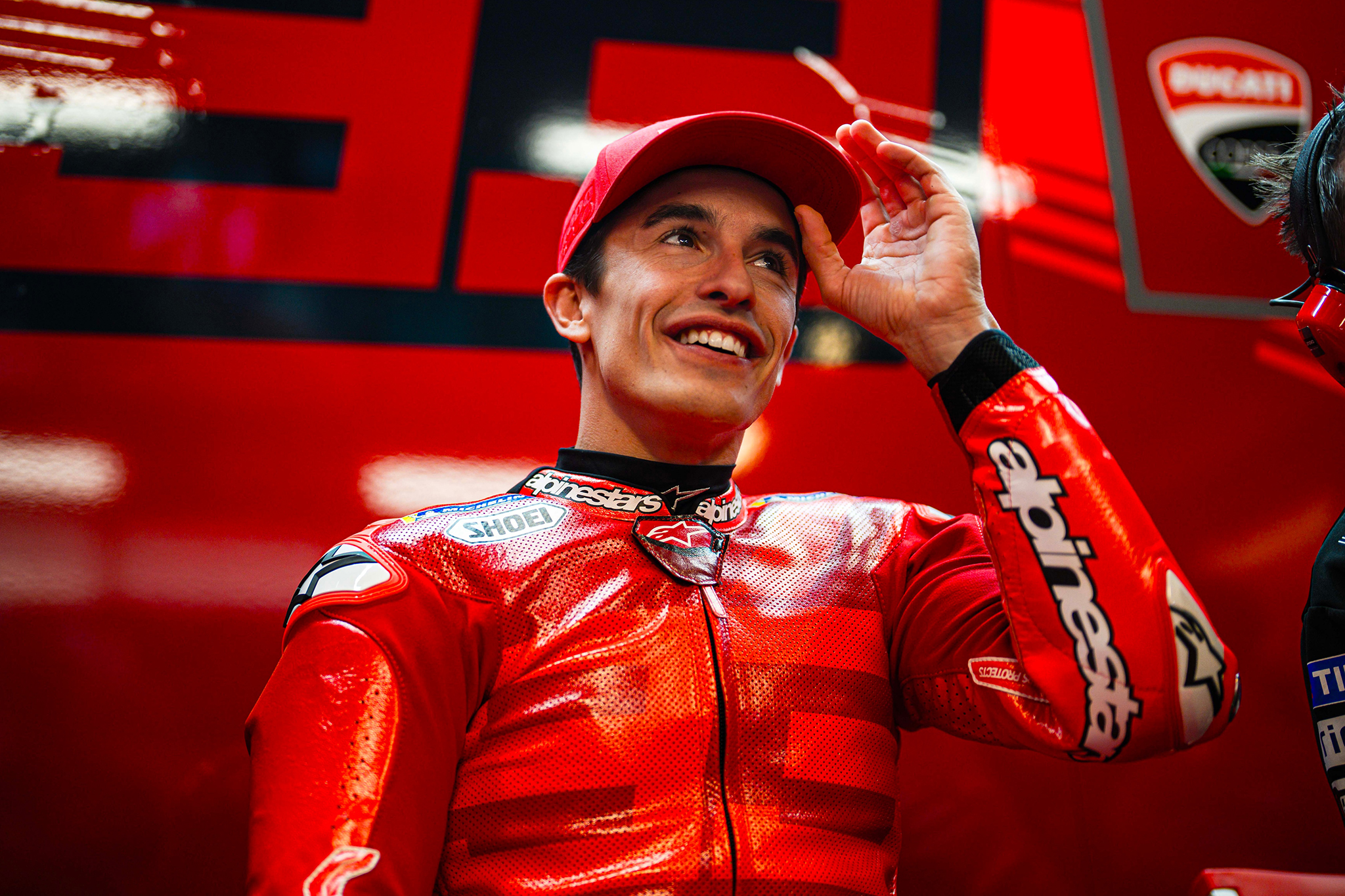 Marc Marquez dressed in Ducati red.
