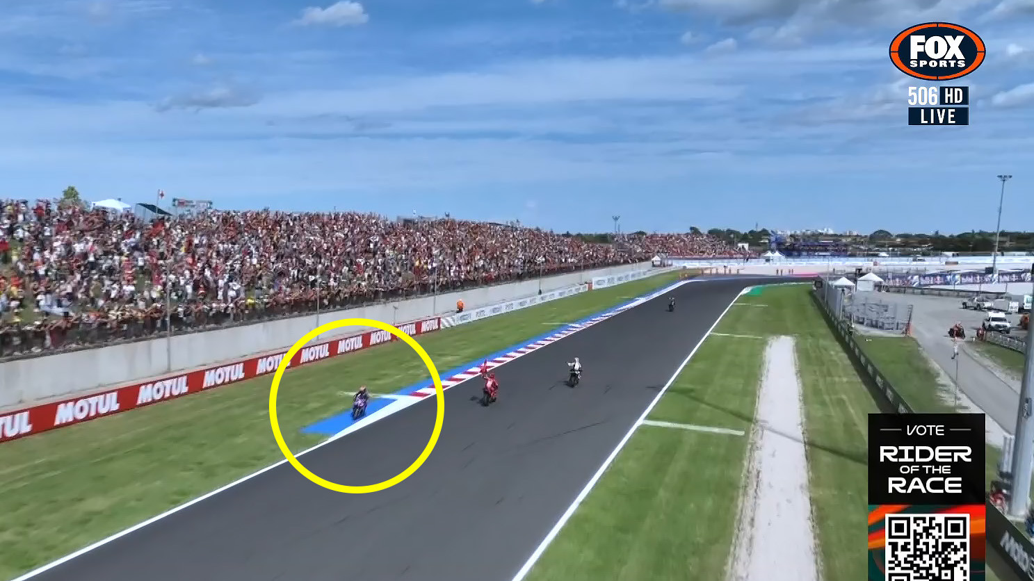 Jack Miller (circled) was seen riding the wrong way after the MotoGP race at Misano.