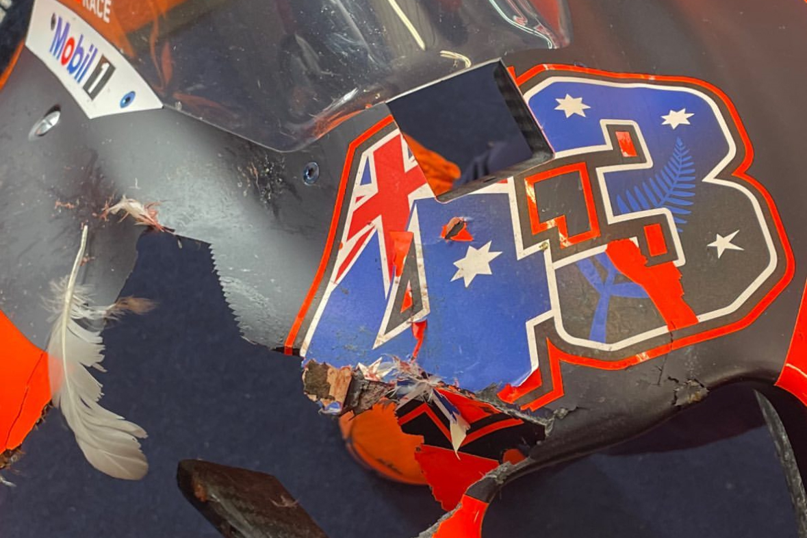 An errant sea gull fell victim to Jack Miller’s KTM RC16 during the sprint at Phillip Island.