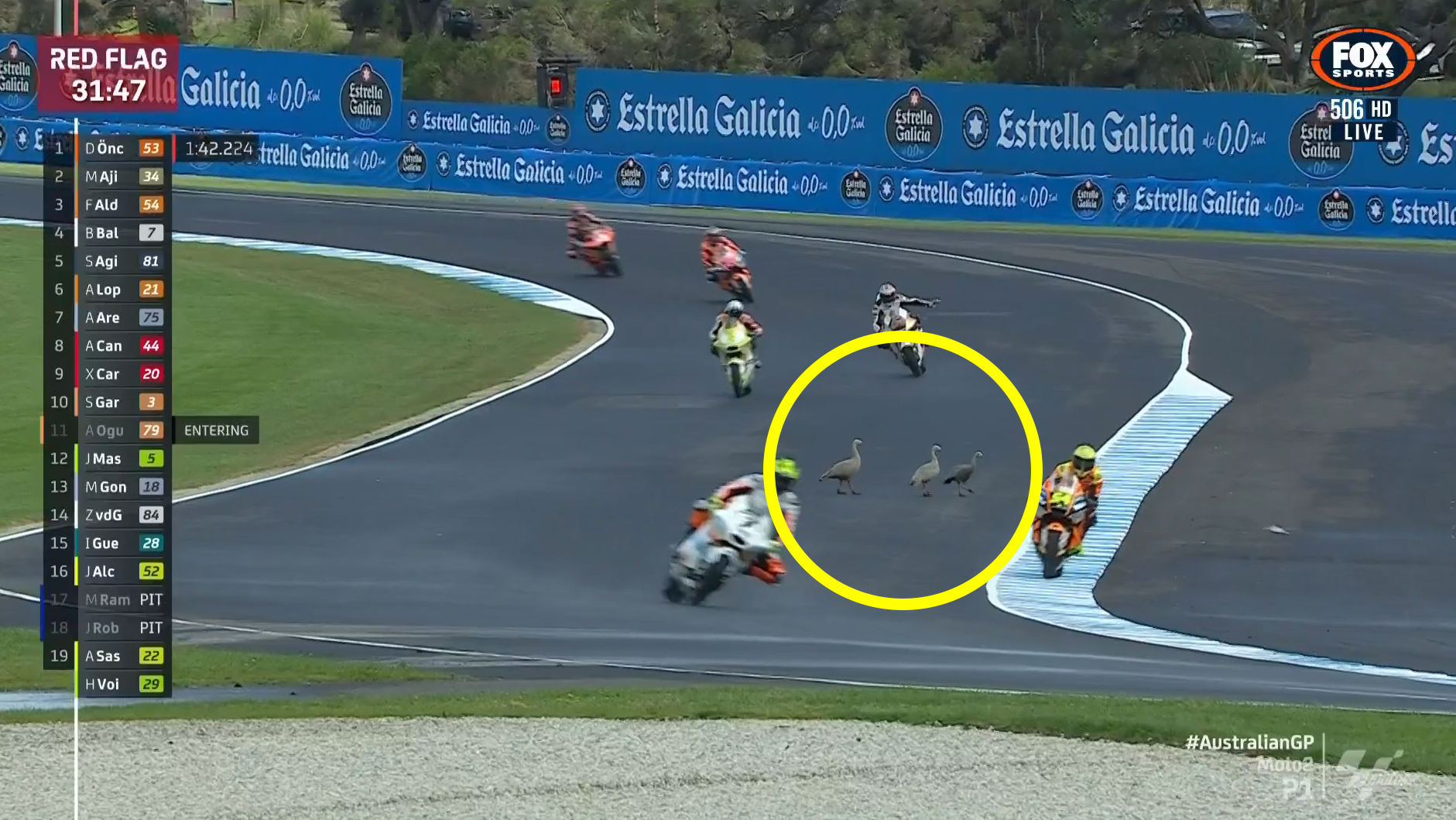 That session was red-flagged with 31 minutes remaining when several Cape Barren geese wandered onto the track at Hayshed.