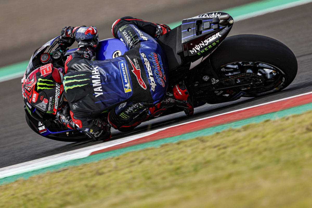 Monster Energy Yamaha rider Fabio Quartararo qualified on pole position but his YZR-M1 tends to be quite susceptible to a big increase in front tyre pressure when it gets stuck behind another bike.