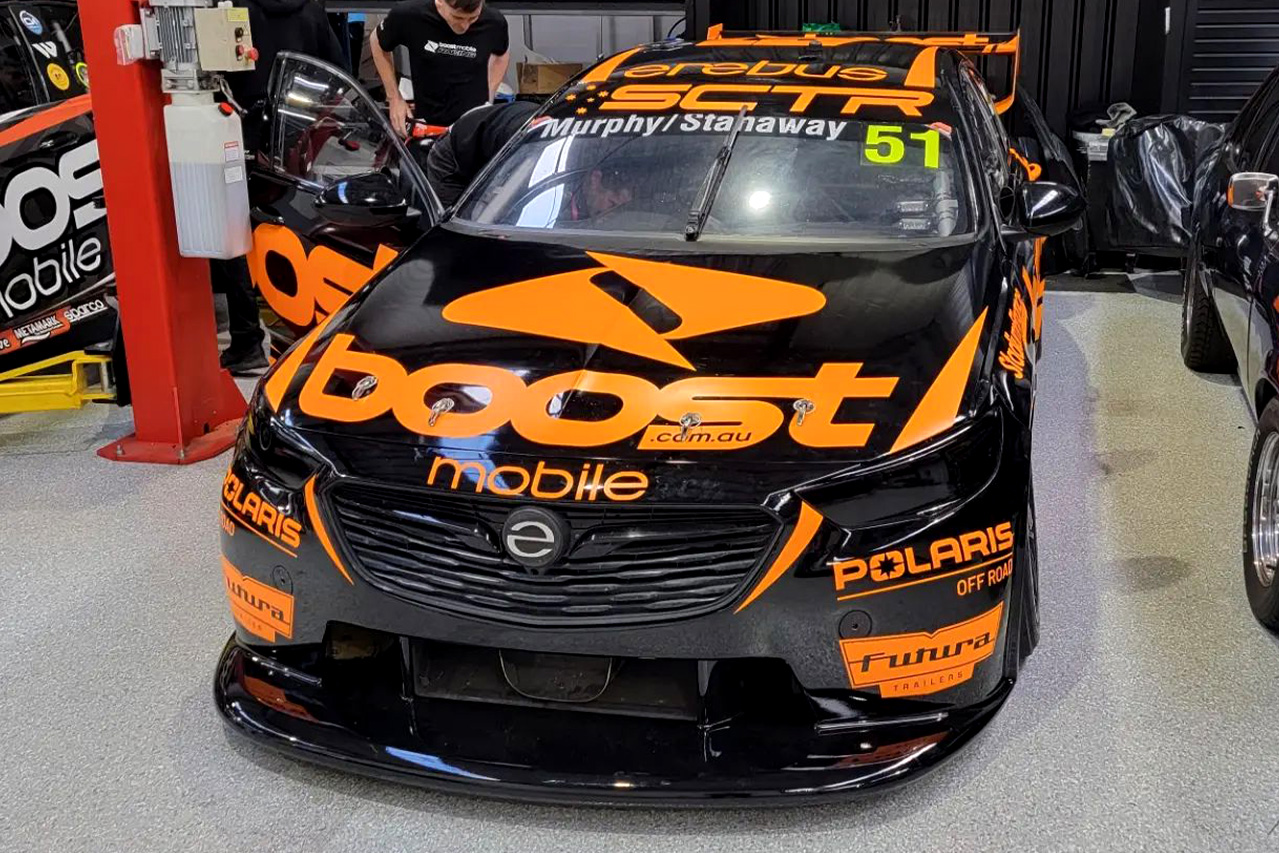 Boost Mobile boss Peter Adderton shared images of the #51 Holden ZB Commodore in black and fluorescent orange on social media.