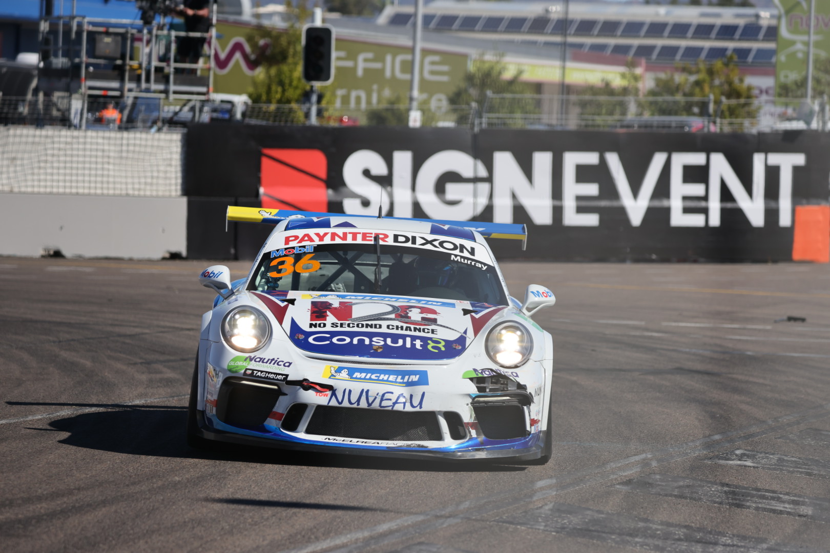 Cooper Murray has taken victory in the opening Porsche Paynter Dixon Carrera Cup Australia race in Townsville but will be the subject of a post-race investigation.