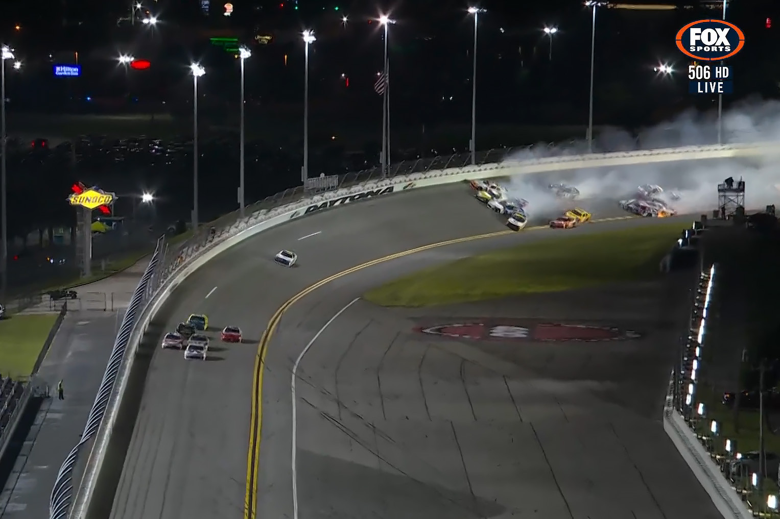 In the end, the 35-year-old was able to hold off teammates Justin Allgaier and Sammy Smith for the win while the field wrecked behind them.