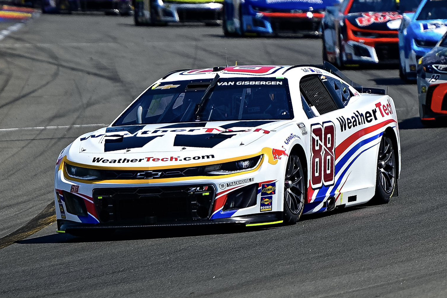 Driving the #88 Trackhouse Racing Chevrolet Camaro, SVG controlled proceedings for his fourth Cup Series win this year.