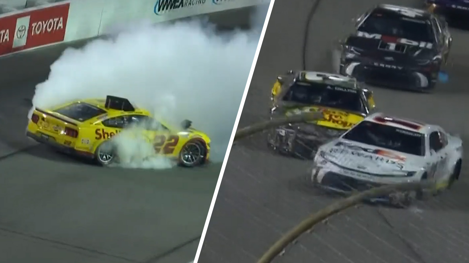 The #22 spun into the wall and that opened the door for Hamlin to go through and take the lead momentarily.