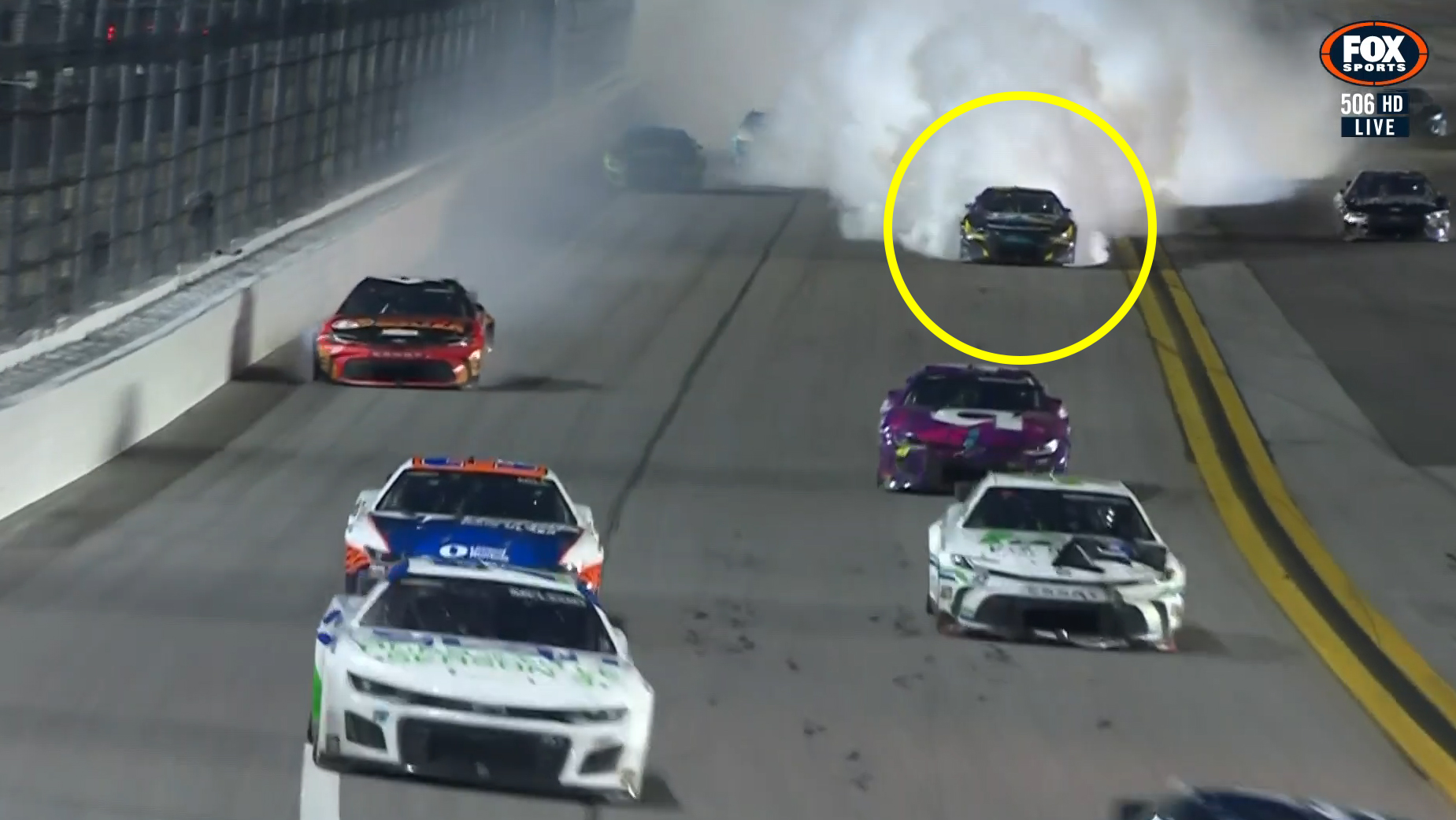 At the same time as van Gisbergen’s engine blew, the Toyotas of Martin Truex Jr. (#19) and Erik Jones (#43) suffered punctures.