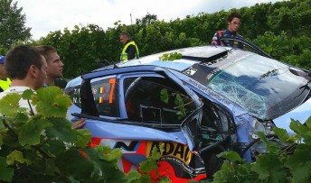 Despite rolling six times, the accident occurred in a vineyard section of the 4.60km Konz stage and the soft grape vines absorbed much of the impact.