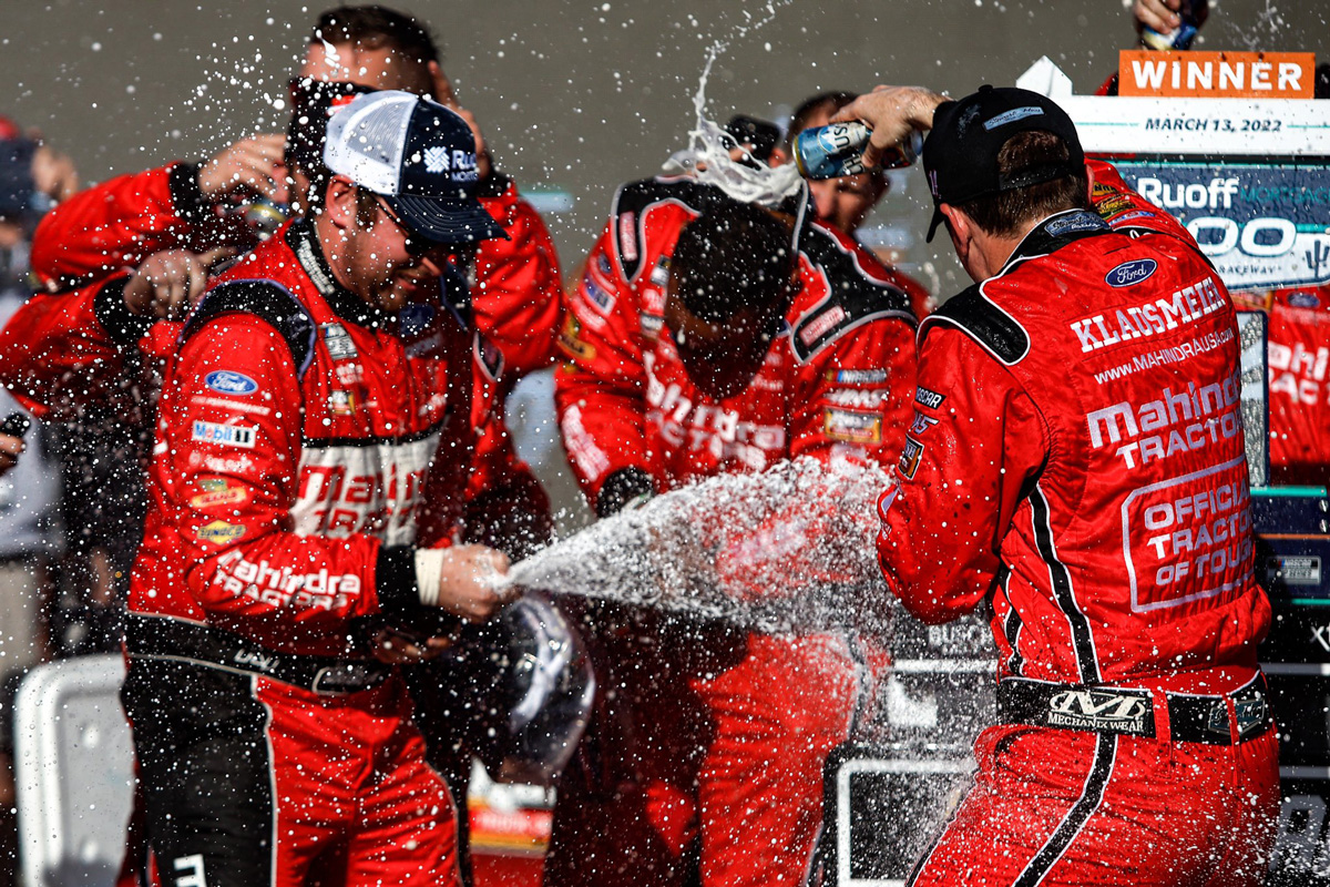 “So to get this #14 back in victory lane, to do it with Mahindra Tractors, their first year in the sport… everybody that’s believed in me, it’s unbelievable.”