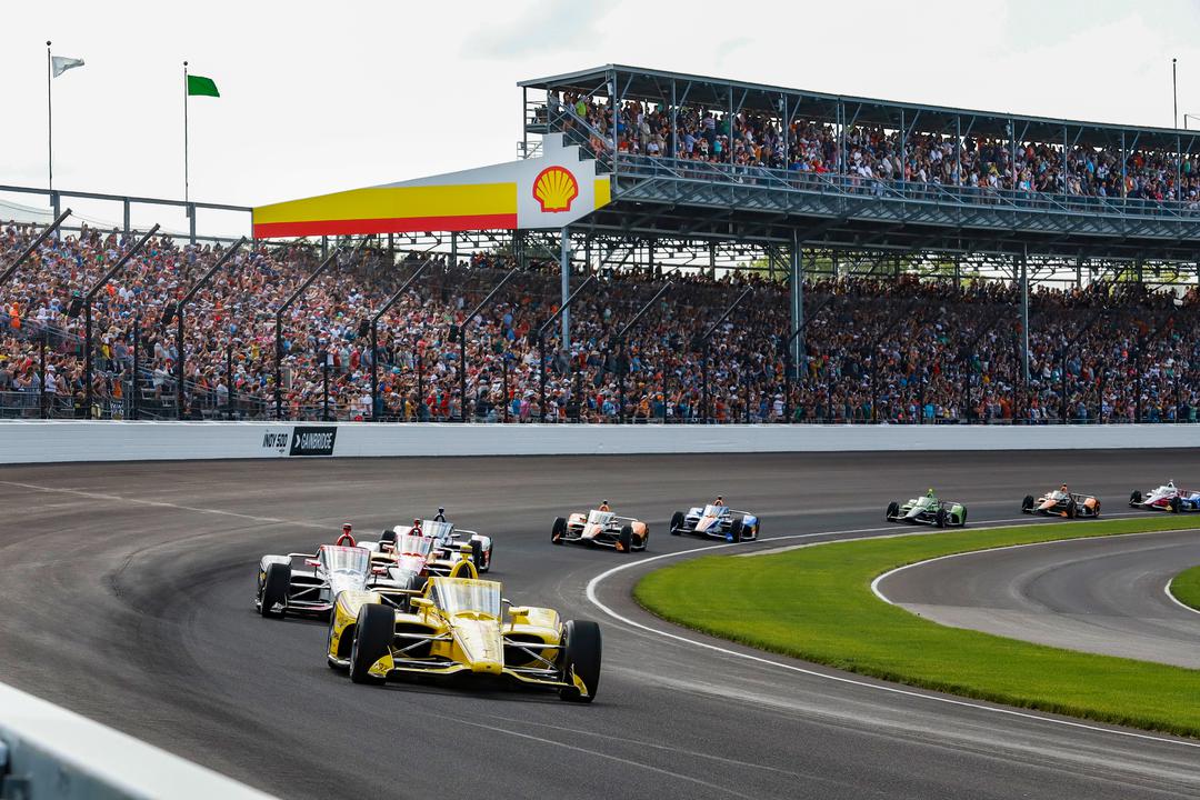 Kyle Larson dropped from fifth to 13th when he broke into wheelspin and then mis-shifted in the #17 McLaren Chevrolet, as Ferrucci (#14 AJ Foyt Racing Chevrolet) took up fourth and Alexander Rossi (#5 McLaren Chevrolet) fifth.