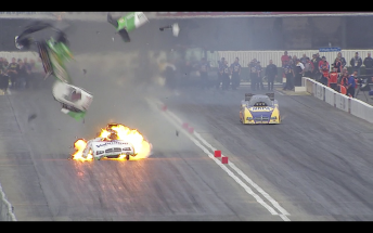 The telltale sign before the explosion came when the flames from the Valvoline Funny Car changed colour, next minute, the entire body was blown off. Thankfully for Beckman, he was able to immediately deploy the parachutes and the flaming wreck was able to come to a standstill and he exited the vehicle under his own steam.