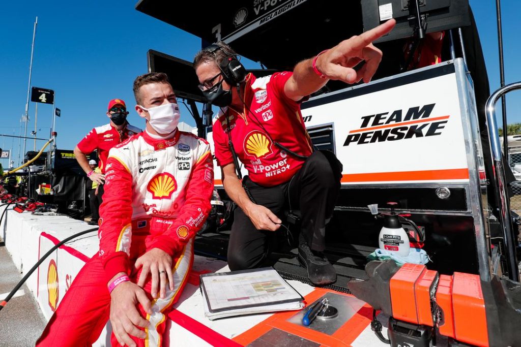 Former Scott McLaughlin Strategist Jon Bouslog has been recalled to the race track after Team Penske suspended four individuals over its push-to-pass scandal. Image: Penske Entertainment