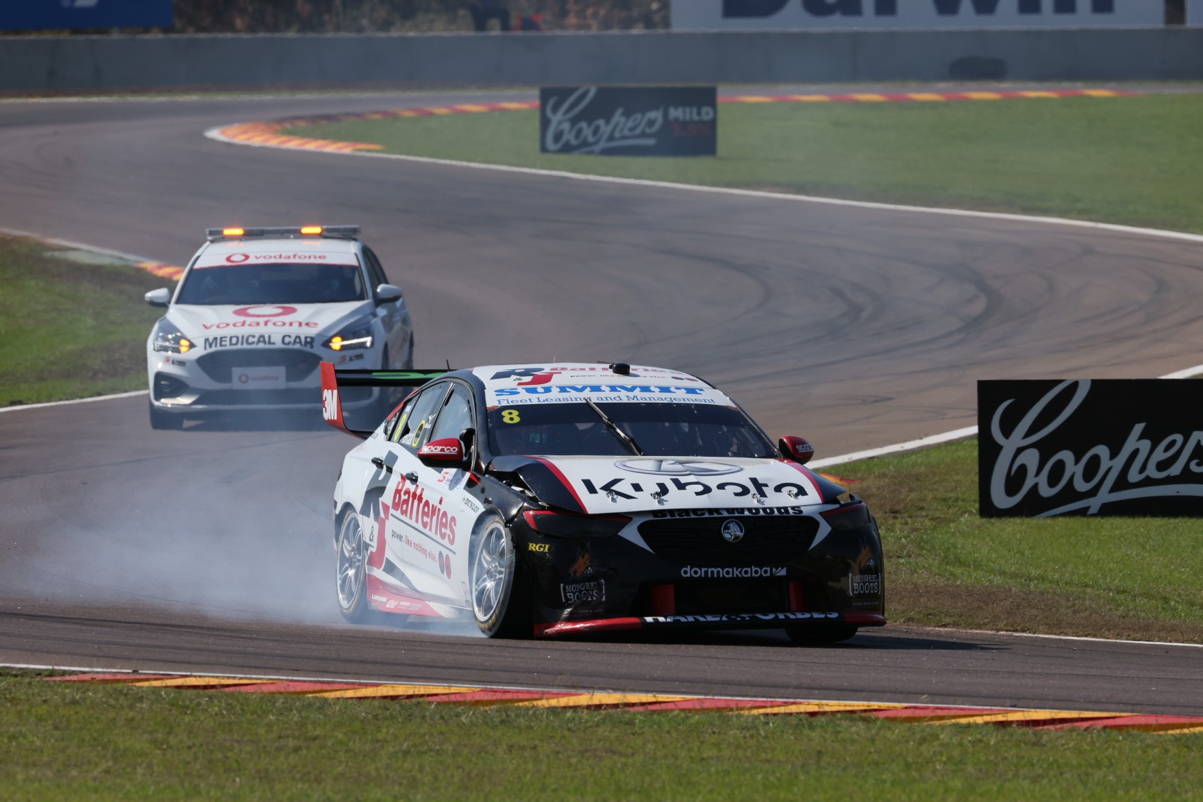 The Percat incident was the first of two for Brad Jones Racing after Macauley Jones spun on his own and clattered the inside Armco barrier at Turn 5.