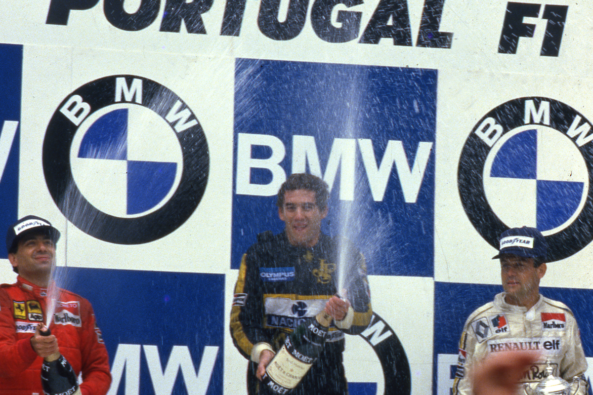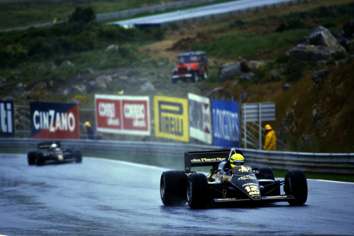 Ayrton Senna claimed his first victory in Formula 1 on this day in 1985, mastering difficult conditions in a wet Portuguese Grand Prix at Estoril.