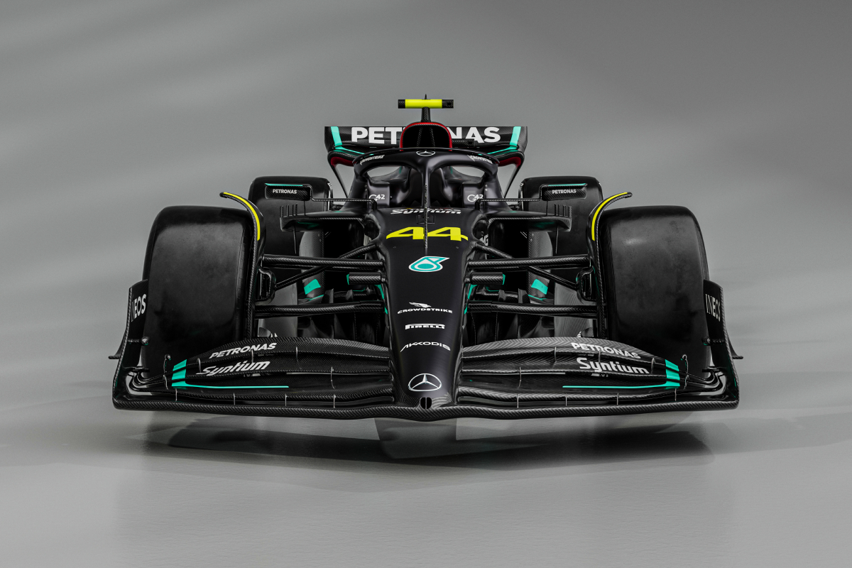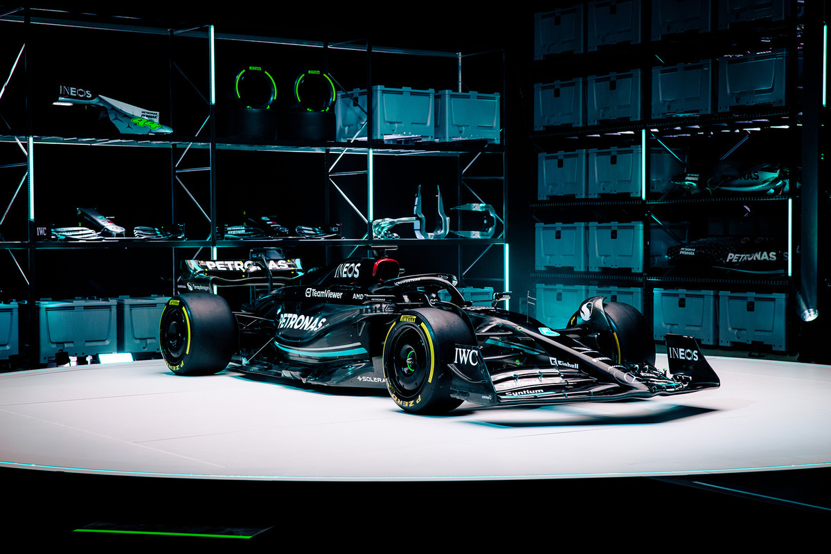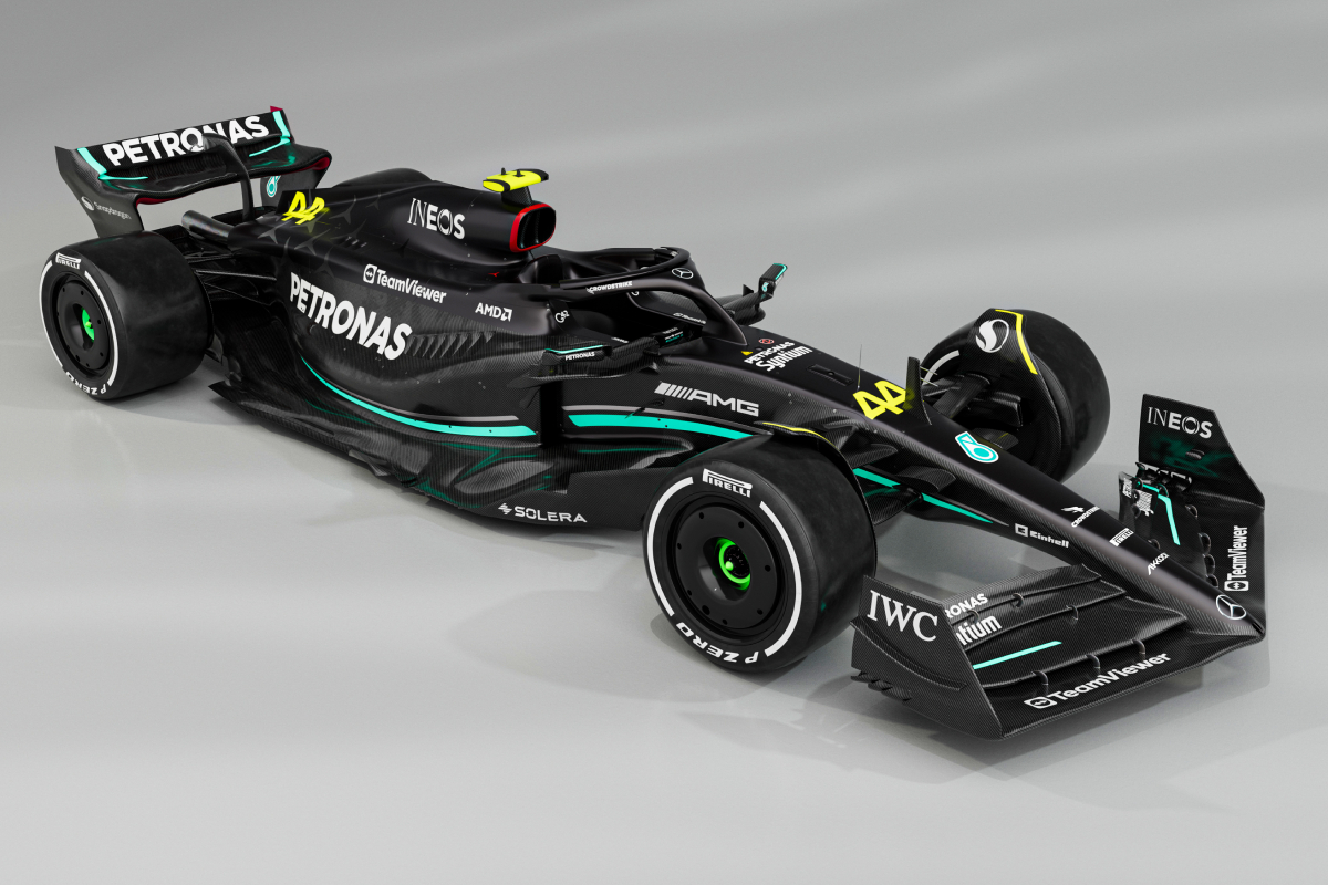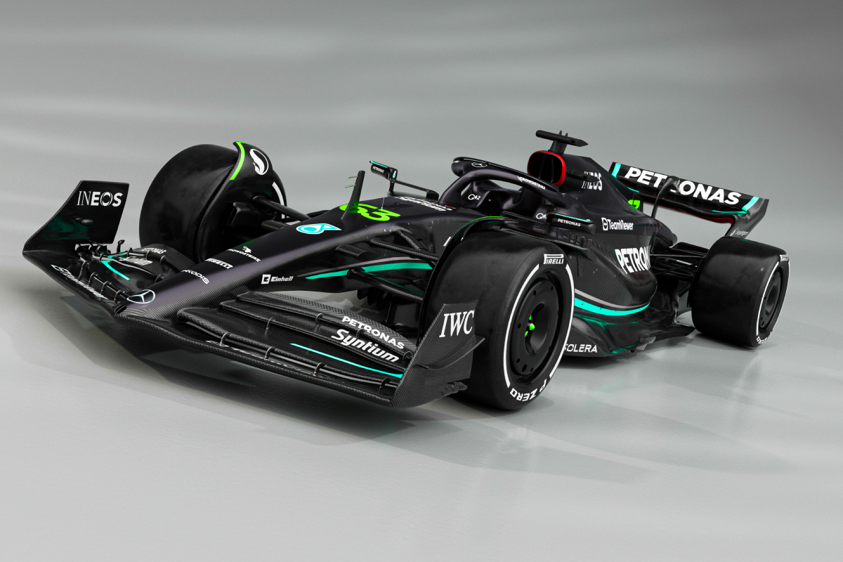 Check out images of the Mercedes F1 W14 ahead of the 2023 Formula 1 season, reverting to a black livery.