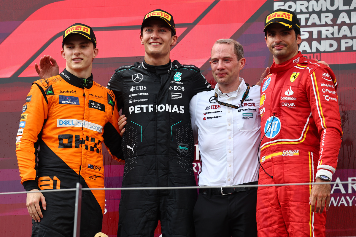 It left Russell out front in the final laps from Carlos Sainz and the charging Piastri, who stole second with a bold move around the outside of the Ferrari at Turn 5.