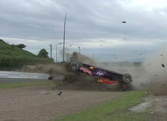 Daniil Kvyat will start the Japanese Grand Prix from the pit lane after escaping injury in a huge crash at Suzuka which severely damaged his Red Bull RB11.