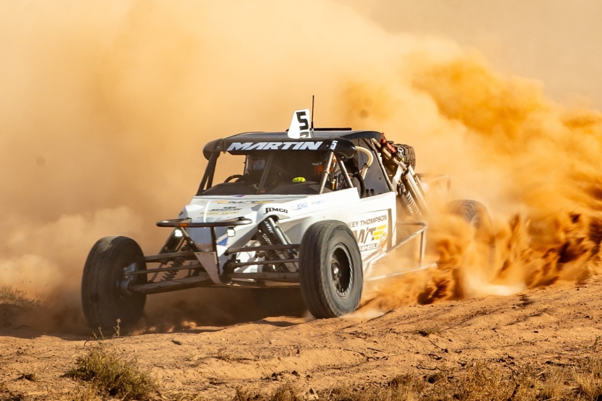 In their Nissan V6 Twin Turbo powered Jimco Aussie Special, they took the lead on the final 160km lap and won by 40s. Second went to James Cook and Mitch Aucote in their new Chev LS7 engined GET Performance with third in a Pro Buggy class one-two-three going to Travis Robinson and Paul Currie (Jimco/Nissan TT).