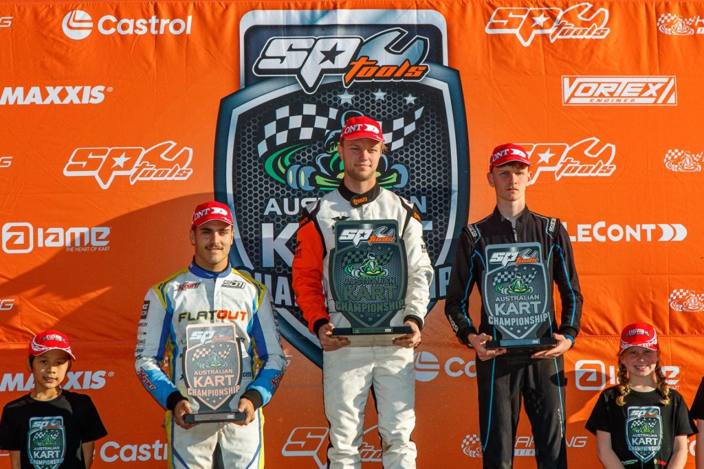 Cordato led for much of the season and was unable to start the final at Emerald from pole position after pulling out with a technical issue before the race start. Little did he know that a fair chunk of the field wouldn’t get past the first corner in a multi kart pileup. He’ll head to Oakleigh ready and buoyed by brother, Lewis’ win in KZ2 at the last round.