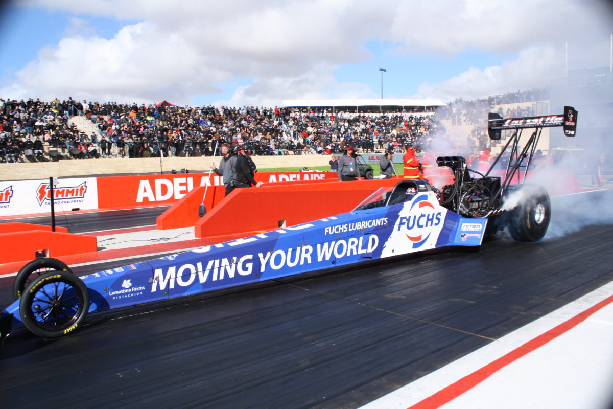 Some participating Top Fuel teams, including Rapisarda Autosport International, PremiAir Racing, and Lamattina Top Fuel Racing, agreed to do burnouts and a launch for the crowd, with the times recorded not counting towards qualifying.