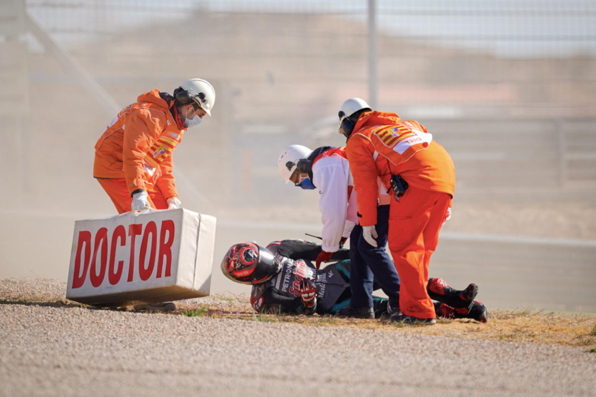Quartararo was taken to the medical centre for a check-up, with a team spokesperson later confirming that x-rays showed the rider had no broken bones despite the 21-year-old languishing with pain in his hip.