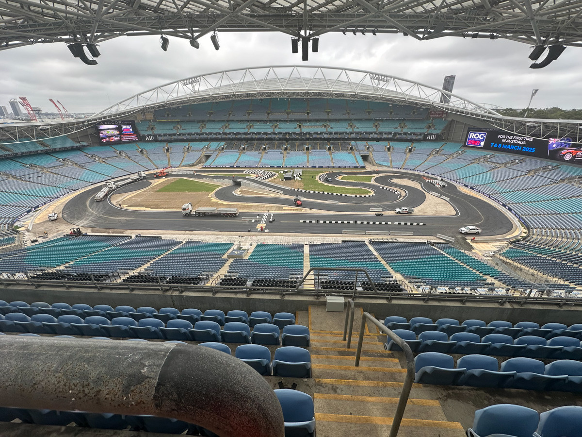 These are the first photos of the one-kilometre track built inside Accor Stadium (Stadium Australia) for the first ever running of the event on Aussie soil.