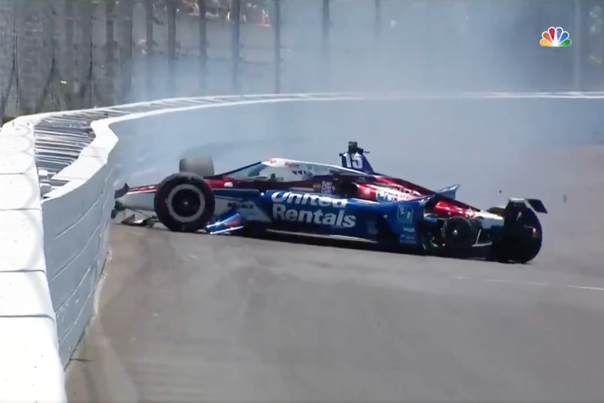 Replays showed that was not due to driver error but rather the fact his new left-rear tyre hadn’t been tightened adequately – that tyre going on to hit the Ed Carpenter Chevrolet of Conor Daly at high speed.