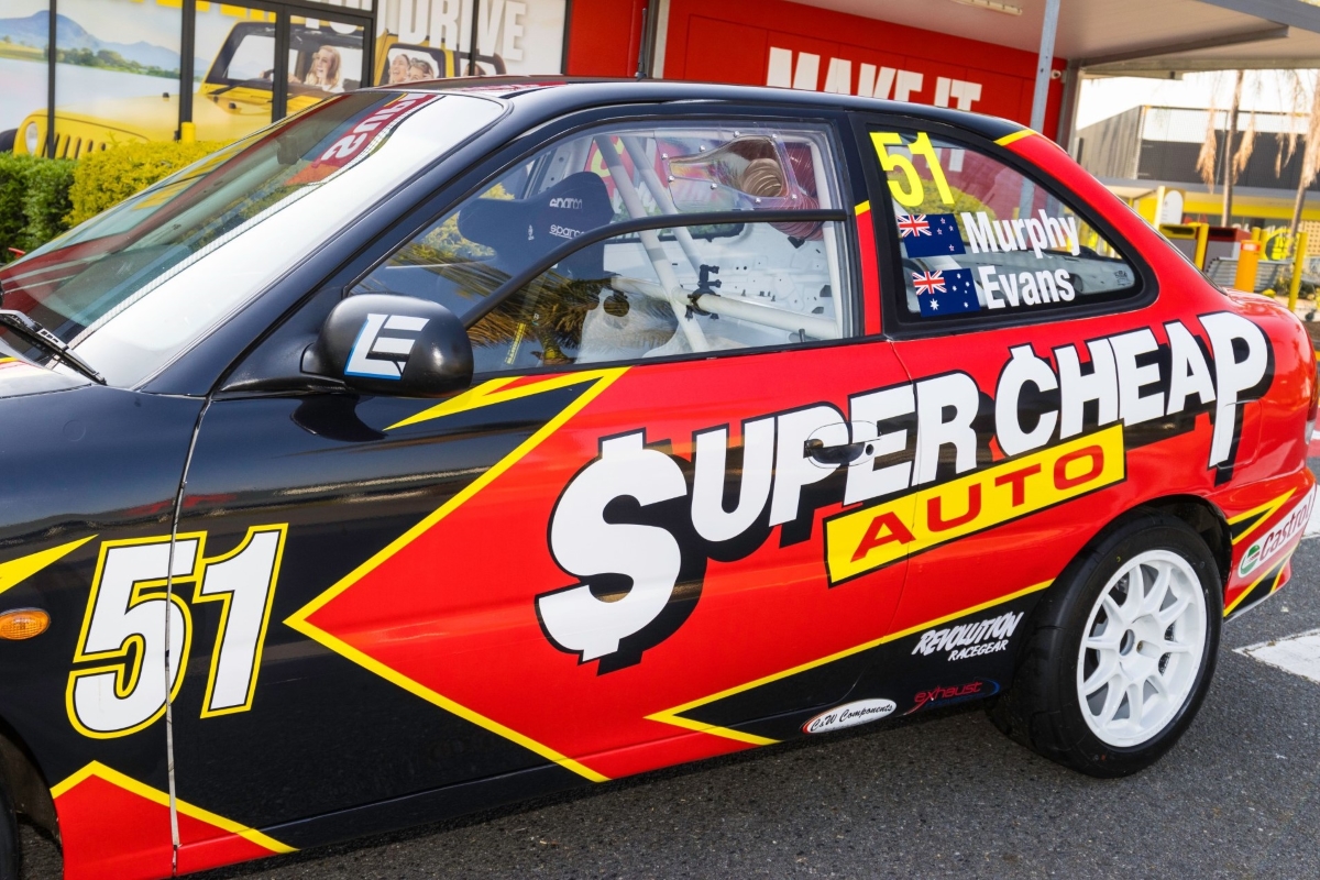 Presented in the colours that four-time Bathurst winner Greg Muphy raced in 2005, Lincoln Evans’ Hyundai Excel will be co-driven by Murphy’s son Cormac at Queensland Raceway on September 28-29.
