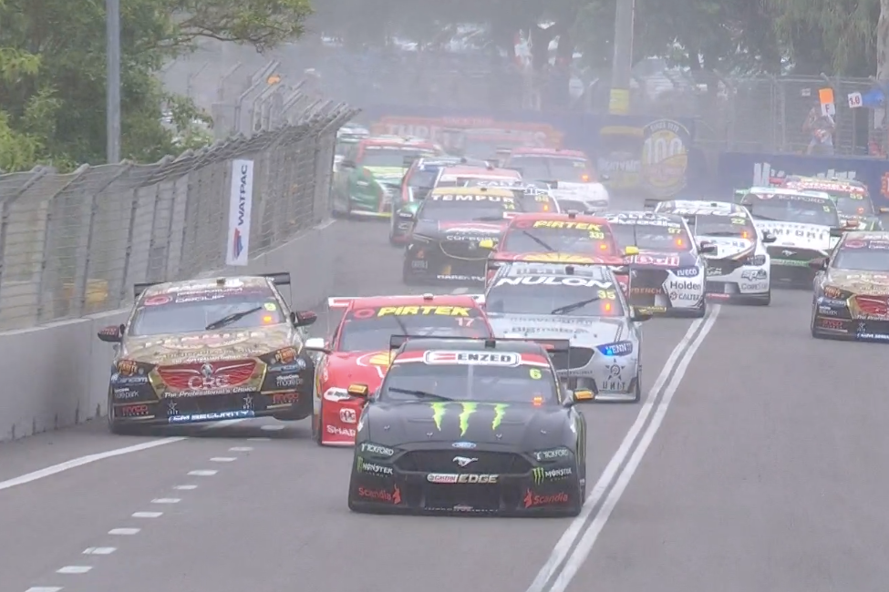 Both cars sustained damage with McLaughlin’s Shell Mustang picking up a puncture, while Reynolds’ Penrite Racing Commodore required more significant repairs, due to a broken steering arm that put him multiple laps down.