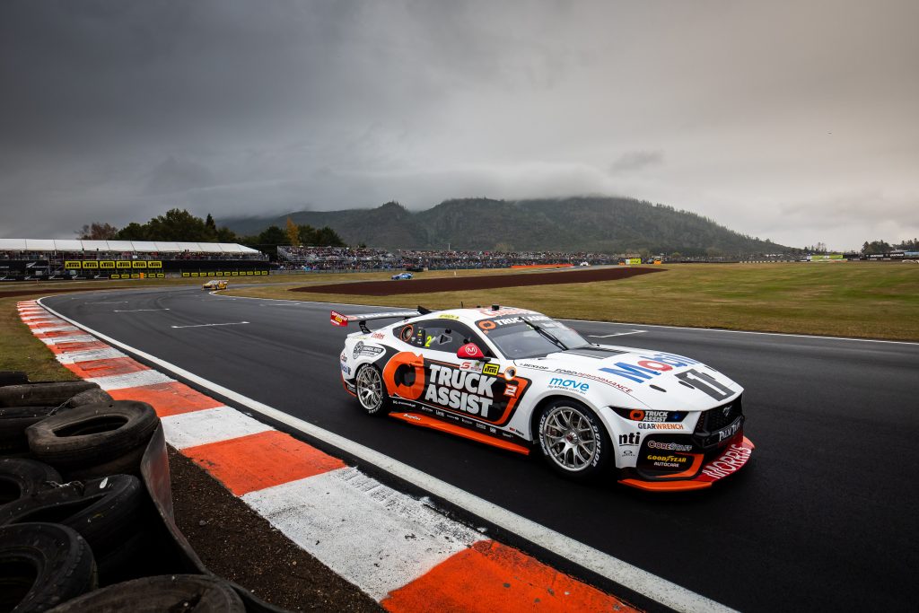 Wood’s mistake flew under the radar precisely because he was into an effective podium position when, seconds earlier, team-mate Chaz Mostert lost a wheel from his #25 Mobil 1 Optus Mustang.