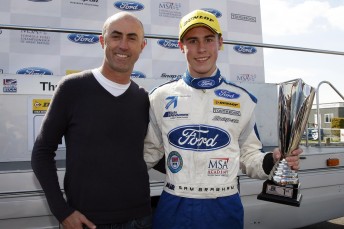 However, the 19-year-old’s maiden car race win proved to be a tricky one. First he had to fend off his Joe Tandy Racing team-mate Jayde Kruger at the start and then a hard charging Harrison Scott.
