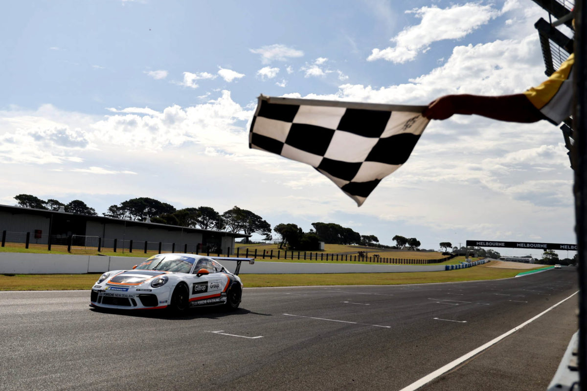 Marco Giltrap has won for a second time on Sunday around Phillip Island, taking the Porsche Michelin Sprint Challenge Jim Richards Enduro Race win.