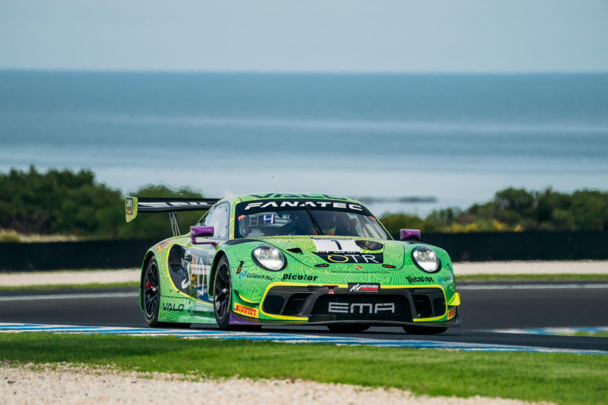 From the outside of the front row, 2022 champion Yasser Shahin grabbed the lead and his team-mate Garnet Patterson brought their Porsche 911 GT3 R home the winner in Race 1 of the Fanatec GT World Challenge Australia Powered by AWS third round.