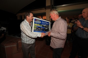The Australian legends, completing demonstration runs in famous Australian touring cars, were also presented with one-off framed posters of the cars that they are competing in this weekend as part of the Pirtek Australian Legends.